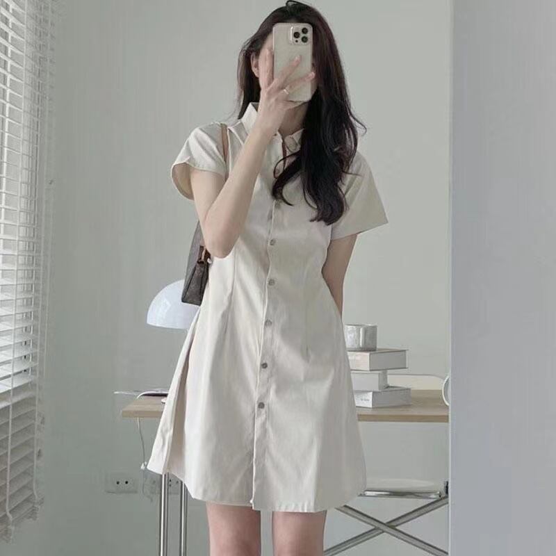 夏のシックなラペルシングルブレストウエスト半袖ワンピース。ウエスト部分のデザインが女性らしさを引き立て、上品で華やかな印象を与えます。軽やかな素材感のポリエステルで、夏の暑い日にも涼しく着用できます。